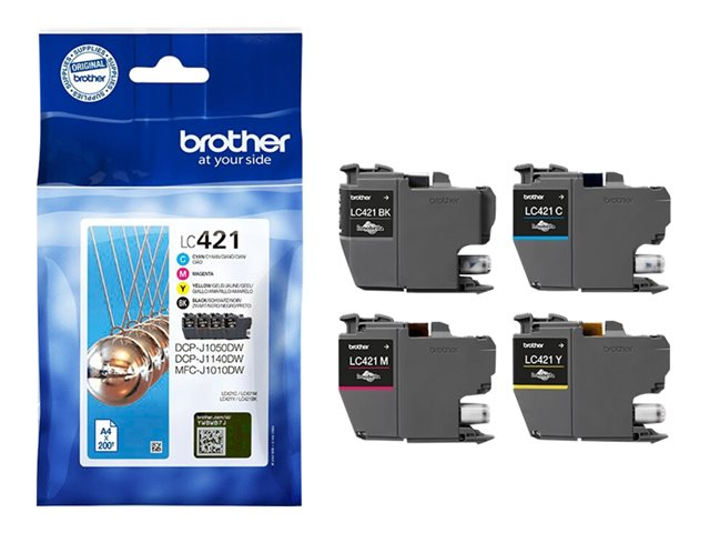 Brother LC421 - 4-pack - svart, gul, cyan, magenta - original - blekkpatron - for Brother DCP-J1140DW, MFC-J1010DW, MFC-J1012DW LC421VAL