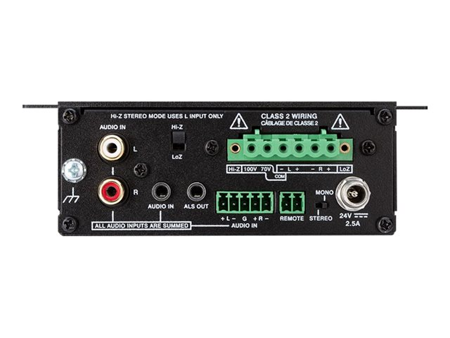 - 1 x 50 W output for Hi-Z (70 V and 100 V) speakers