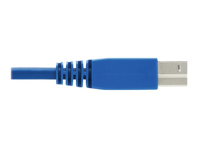 The USB cable connects the KVM switch's USB-B port to your computer's USB-A port. It enables you to control all connected computers from one centralized keyboard/mouse, while also accessing external flash drives, printers, scanners or other devices connected to the switch's USB peripheral ports. The cable supports USB 3.1 Gen 1 data transfer speeds up to 5 Gbps.