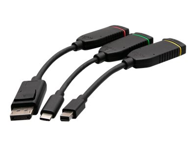 C2G 6ft (1.8m) 4K HDMI Premium Cable and Dongle Adapter Ring with Color Coded Mini DisplayPort, DisplayPort, and USB-C - Videoadaptersett - svart - gullglimtkontakter, 4K 60Hz støtte, 4K30Hz-støtte (DisplayPort), 4K30Hz-støtte (mDP)