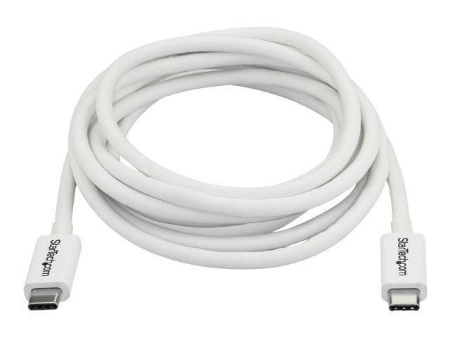 StarTech.com 6.6ft (2m) Thunderbolt 3 Cable, 20Gbps, 100W PD, 4K Video, Thunderbolt-Certified, Compatible w/ TB4/USB 3.2/DisplayPort - Thunderbolt-kabel - USB-C (hann) til USB-C (hann) - USB 3.1 Gen 2 / Thunderbolt 3 / DisplayPort 1.2 - 2 m - 4K-støtte - hvit - for P/N: CDP2HDUACP, CDP2HDUACPW TBLT3MM2MW