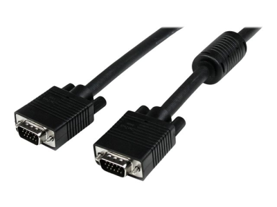 This durably constructed coaxial VGA video cable (HD15 to HD15) eliminates the picture "ghosting" and fuzzy images that are inherent to non-coaxial VGA cables, while delivering superior EMI interference protection by using ferrite cores near the connector ends.