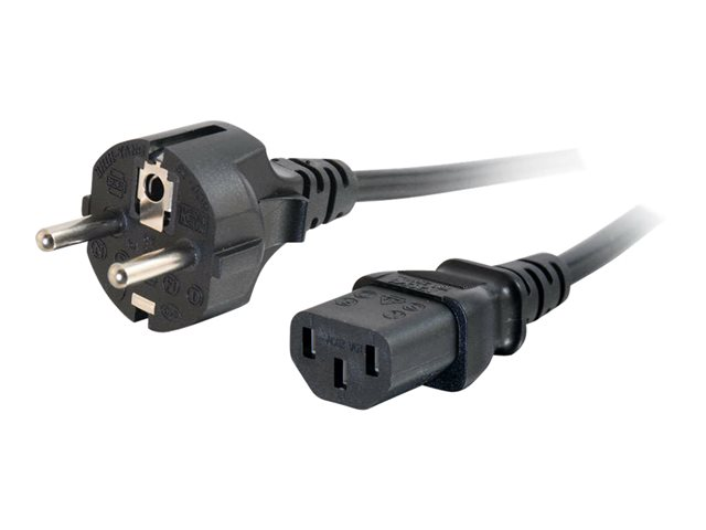One end of this power cord will work with most desktop PCs, monitors, scanners, printers and other devices that use the 3-pin shroud power connector; the other end features a 2-prong Schuko European plug. The female connector plugs directly into device, while the male connector plugs into the standard European outlet. This premium, heavy-duty, 16 AWG cord features a fully moulded design for maximum durability and long life.