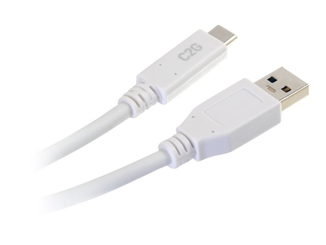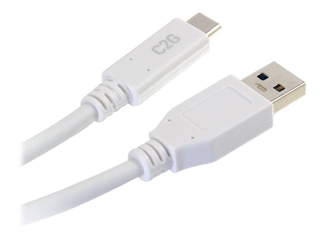C2G 10ft USB C 3.0 to USB Cable - USB C to USB A - M/M - USB-kabel - USB-type A (hann) til USB-C (hann) - USB 3.1 - 30 V - 3 A - 3.05 cm - hvit 28837