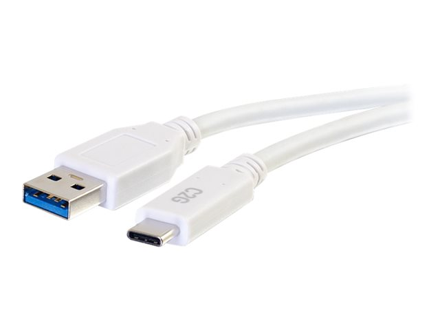 C2G 10ft USB C 3.0 to USB Cable - USB C to USB A - M/M - USB-kabel - USB-type A (hann) til USB-C (hann) - USB 3.1 - 30 V - 3 A - 3.05 cm - hvit
