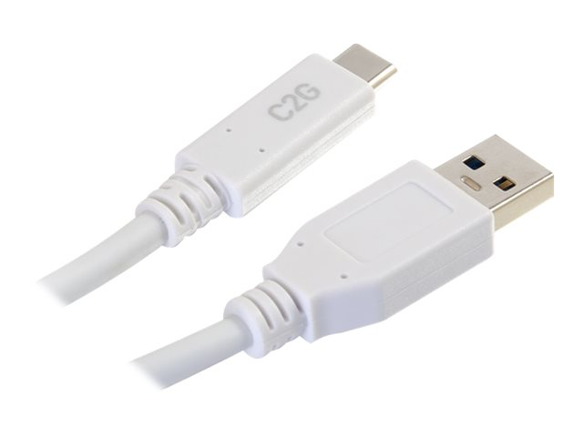 C2G 3ft USB C 3.0 to USB Cable - USB C to USB A - M/M - USB-kabel - USB-type A (hann) til USB-C (hann) - USB 3.1 - 30 V - 3 A - 91.4 cm - hvit