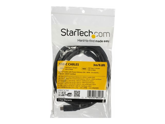 StarTech.com USB C To USB C Cable - 10 ft / 3m - USB-IF Certified - 5A PD - USB 2.0 - USB Type C Charging Cable - USB C Fast Charge Cable (USB2C5C3M) - USB-kabel - USB-C (hann) til USB-C (hann) - Thunderbolt 3 / USB 2.0 - 5 A - 3 m - svart