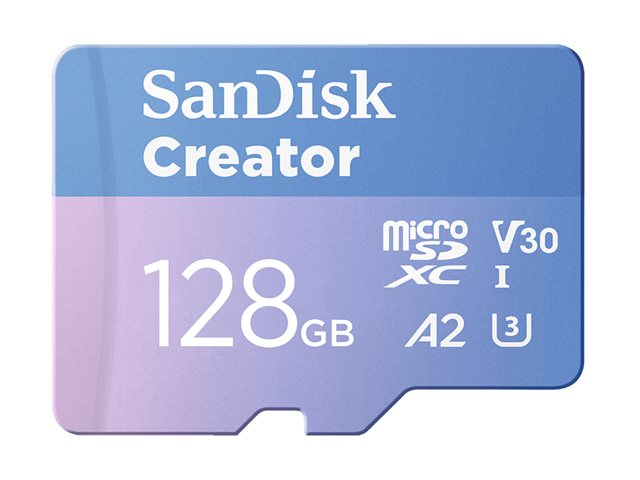 SanDisk Creator - Flashminnekort (microSDXC til SD-adapter inkludert) - 128 GB - A2 / Video Class V30 / UHS-I U3 - microSDXC UHS-I