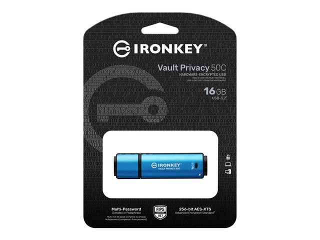 Kingston IronKey Vault Privacy 50C - USB-flashstasjon - kryptert - 16 GB - USB-C 3.2 Gen 1 - TAA-samsvar