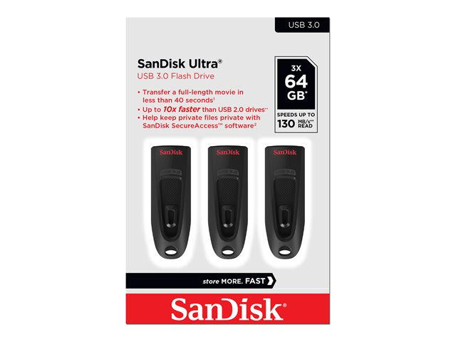 The SanDisk Ultra USB 3.0 Flash Drive combines faster data speeds and generous capacity in a compact, stylish package. Spend less time waiting and transfer files to the drive up to ten times faster than with a standard USB 2.0 drive. With a high storage capacity, the drive can accommodate your bulkiest media files and documents.