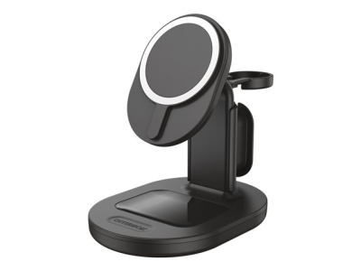 Innovative 3-in-1 charging station for MagSafe powers all your Apple devices in one sleek, spacesaving stand. Click your iPhone to the wireless charging stand and place your AirPods case on the base. In addition, you can set up your Apple Watch charger on the stand to complete the one-stop charging station for all your Apple devices. Perfect for home and office.