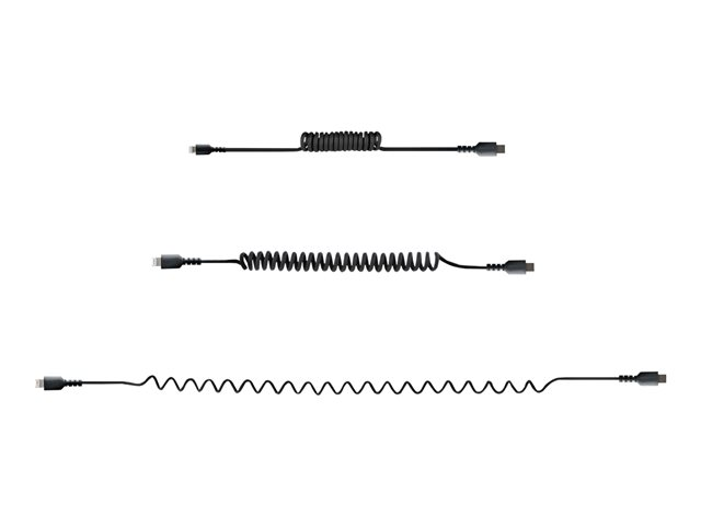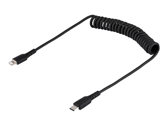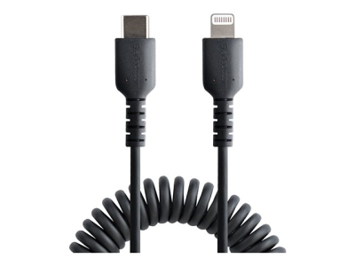 StarTech.com 50cm/20in USB C to Lightning Cable, MFi Certified, Coiled iPhone Charger Cable, Black, Durable and Flexible TPE Jacket Aramid Fiber, Heavy Duty Coil Charging Cable - Rugged USB Lightning Cable - Lightning-kabel - USB-C hann til Lightning hann - 50 cm - svart - rullet sammen