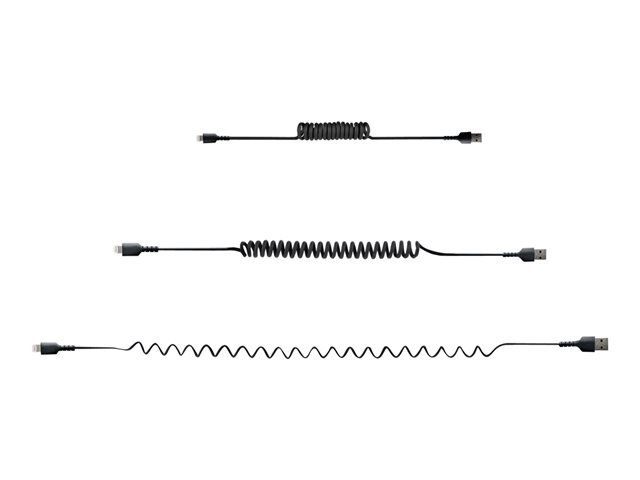 StarTech.com 50cm (20in) USB to Lightning Cable, MFi Certified, Coiled iPhone Charger Cable, Black, Durable and Flexible TPE Jacket Aramid Fiber, Heavy Duty Coil Charging Cable - Rugged USB Lightning Cable - Lightning-kabel - USB hann til Lightning hann - 50 cm - svart - rullet sammen
