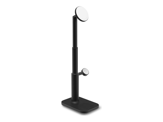 Charge your iPhone, Apple Watch and AirPods all in one spot. The 3-in-1 extendable stand with MagSafe delivers up to 15W of power to your personal devices. The extendable stand saves space on your work surface and lifts your phone up to your line of sight while it charges. So, you can video chat or make hands-free calls. The extendable stand and adjustable head let you find the perfect, flattering viewing angle. The magnetic surface ensures precise alignment for charging that begins on contact. This sleek 3-in-1 stand with weighted base is your ultimate charging solution.