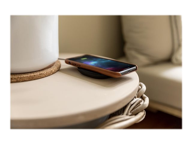 Ikke la størrelsen lure deg. Denne trådløse ladeplaten slår til med sin raske ladekompatibilitet. Den trådløse ladeplaten lader kompatible smarttelefoner og trådløst tilbehør effektivt og raskt. Bare plasser din Qi-aktiverte enhet på platen, og ladingen begynner ved kontakt. I tillegg gir det førsteklasses stoffet snev av stil til ethvert skrivebord eller bordplate.