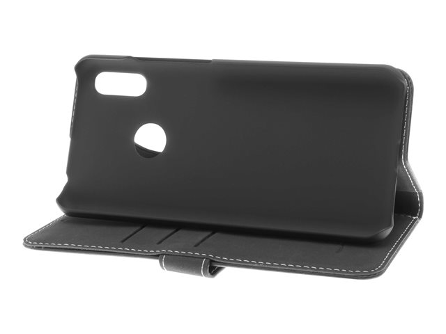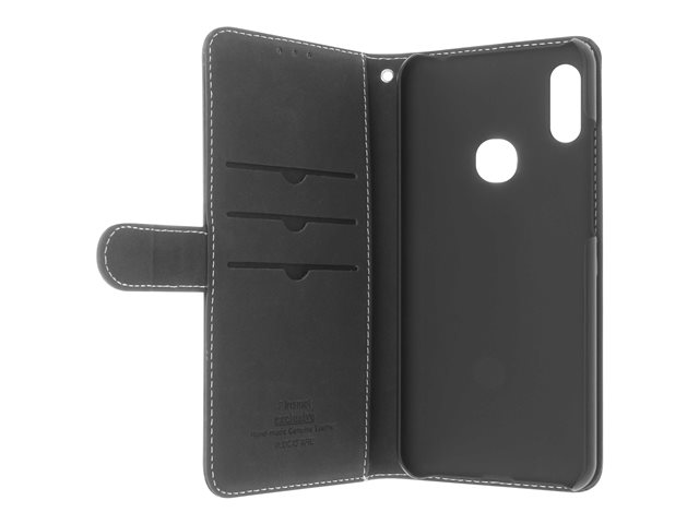 Insmat Exclusive Flip Case - Lommebok for mobiltelefon - ekte skinn, polyuretan, polykarbonat - svart - for Honor 8a