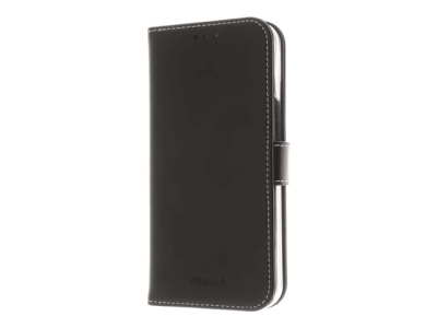 Insmat Exclusive Flip Case - Lommebok for mobiltelefon - ekte skinn, polykarbonat, bomullssting, kartong+papir - svart - for Apple iPhone 14