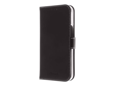 Insmat Exclusive - Lommebok for mobiltelefon - ekte skinn, termoplast-polyuretan (TPU), kartong+papir+aluminiumsfolie, bomullssting - svart - for Apple iPhone 13 Pro