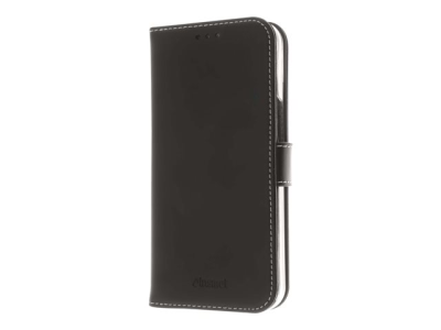 Insmat Exclusive - Lommebok for mobiltelefon - ekte skinn, termoplast-polyuretan (TPU), kartong+papir+aluminiumsfolie, bomullssting - svart - for Apple iPhone 13