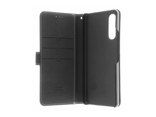 Insmat Exclusive - Lommebok for mobiltelefon - ekte skinn, kartong+papir, polykarbonat (PC), PU-belegg - svart - for Sony XPERIA 10 VI 650-3253
