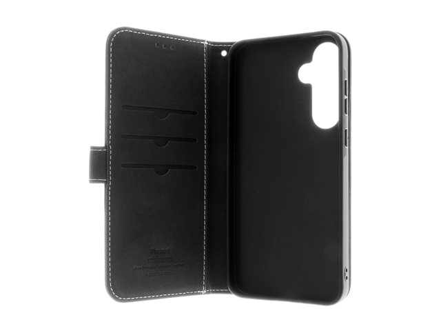 Insmat Exclusive - Lommebok for mobiltelefon - ekte skinn, termoplastisk polyuretan (TPU) holder, bomullssting, kartong+papir+aluminiumsfolie - svart - for Samsung Galaxy S24 FE