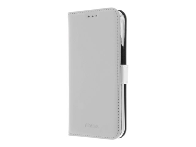 Insmat Exclusive - Lommebok for mobiltelefon - lær, polykarbonat, kartong+papir+aluminiumsfolie, bomullssting - hvit - for Apple iPhone 14 Pro
