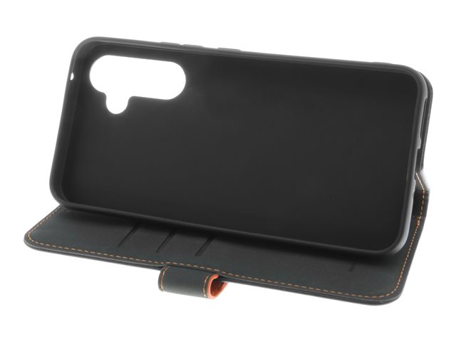Insmat Flip Case - Lommebok for mobiltelefon - ekte skinn, termoplast-polyuretan (TPU), kartong+papir+aluminiumsfolie - svart / oransje - for Samsung Galaxy A34 5G