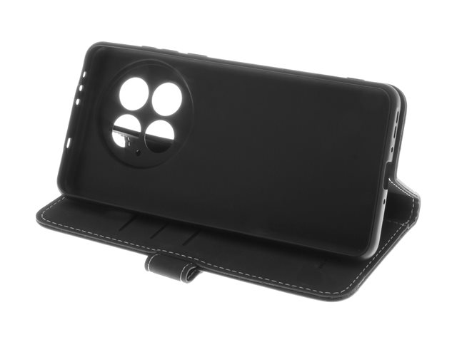 Insmat - Lommebok for mobiltelefon - ekte skinn, kartong+papir+aluminiumsfolie, termoplast-polyuretan (TPU), bomullssting - svart - for OnePlus 13