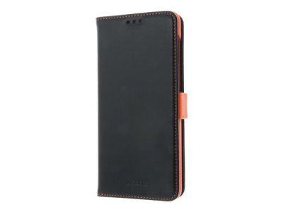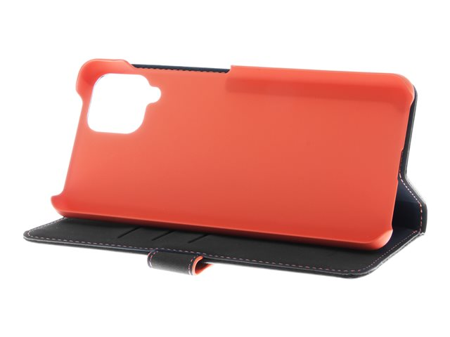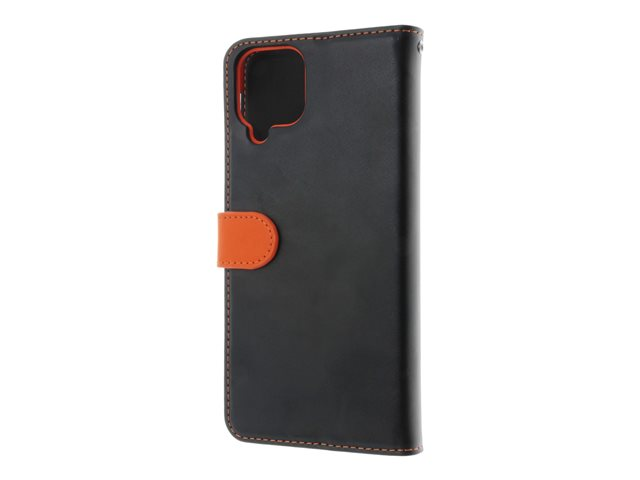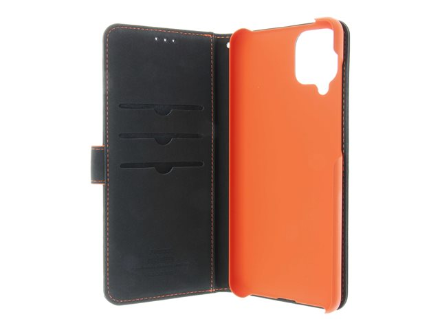Insmat - Lommebok for mobiltelefon - ekte skinn, termoplast-polyuretan (TPU), polyuretanpolstring - svart, oransje, galvanisert bronsering - for Samsung Galaxy A12