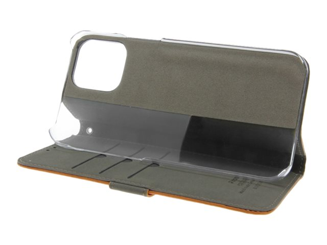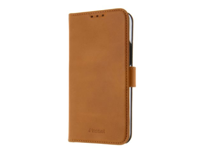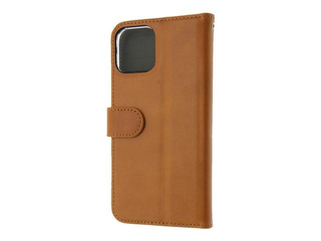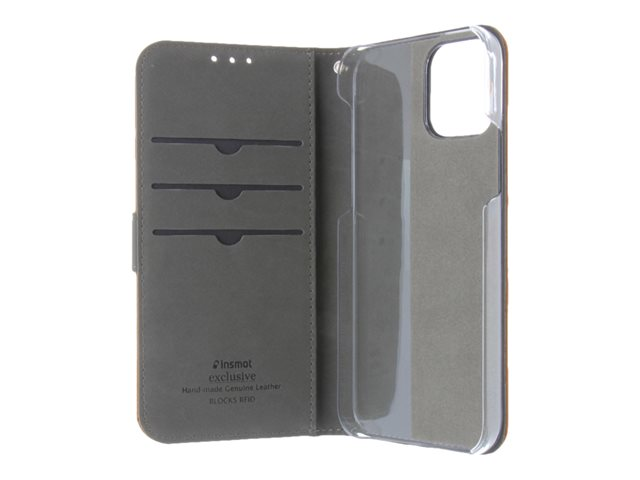 Insmat Premium - Lommebok for mobiltelefon - papir, kartong, lær, polykarbonat, bomull, aluminiumsfolie, bronse - brun - for Apple iPhone 12, 12 Pro