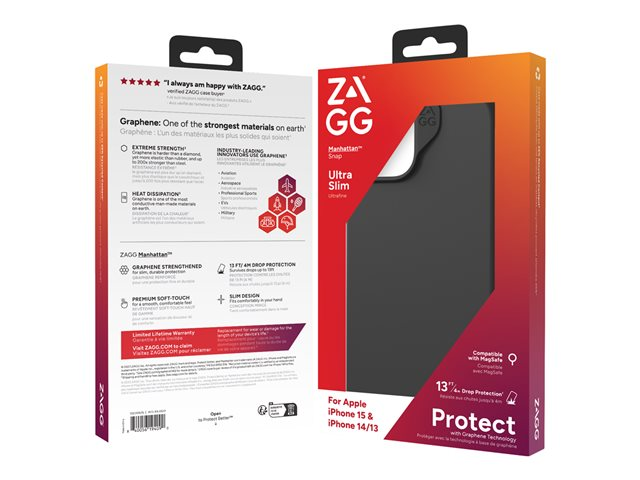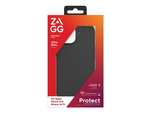 ZAGG Manhattan Snap - Baksidedeksel for mobiltelefon - MagSafe-samsvar - silikon - svart - for Apple iPhone 13, 14, 15 702312676