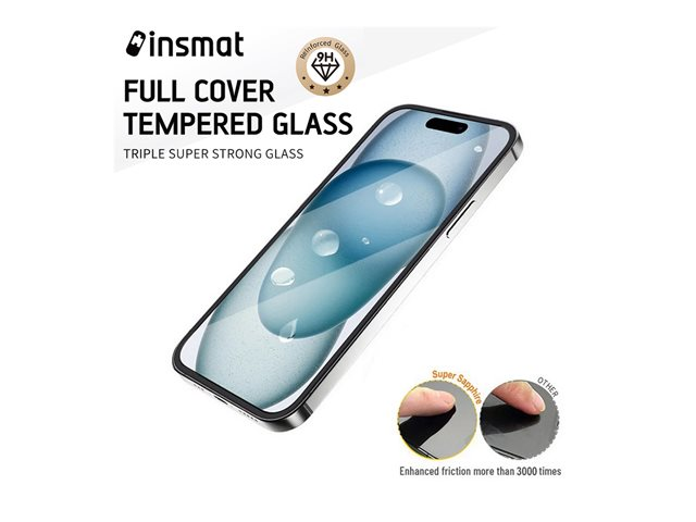 Insmat - Skjermbeskyttelse for mobiltelefon - enkel og støvbestandig, super full dekning - glass - rammefarge svart - for Apple iPhone 16 Plus 861-1611