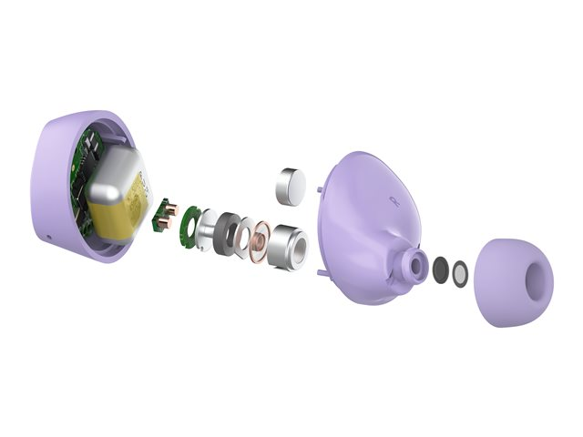 - Mono mode allows use of one earbud at a time to extend battery life and stay alert of surroundings
