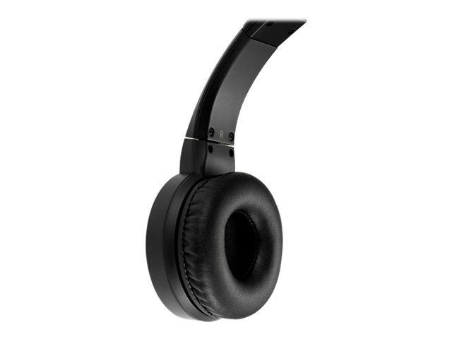 - Lightweight ergonomic on-ear design with adjustable leatherette headband, comfortable earpads, a 270º rotating microphone that can be worn on the right or left side, and a comfortable secure fit