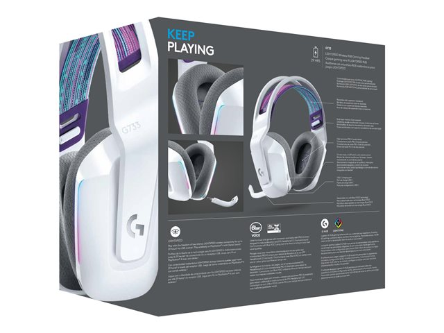 Logitech G G733 LIGHTSPEED Wireless RGB Gaming Headset - Hodesett - full størrelse - 2,4 GHz - trådløs - hvit