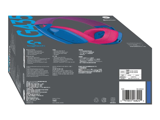 Logitech Lightspeed G435 - Hodesett - full størrelse - Bluetooth / 2,4 GHz radiofrekvens - trådløs - blå - Discord Certified