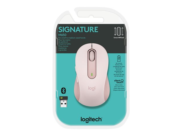 Logitech Signature M650 - Mus - optisk - 5 knapper - trådløs - 2.4 GHz, Bluetooth - Logitech Logi Bolt USB-mottaker - rosa 910-006254
