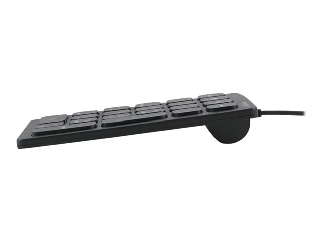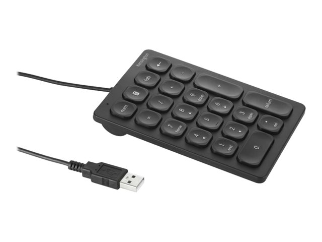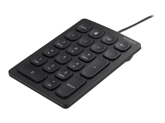 • Wired Numeric Keypad features 21 scissor keys with four shortcut keys, a Num Lock indicator, USB-A connectivity, and anti-slip foot pads