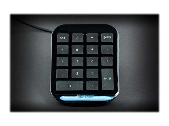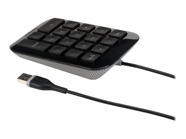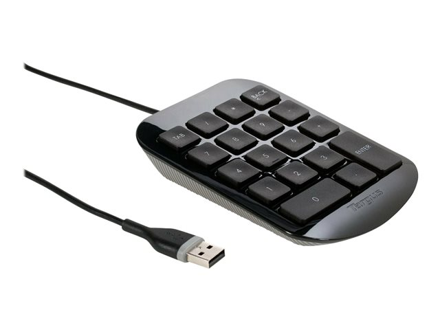 The Targus numeric keypad allows users to type numbers into spreadsheets and other applications quickly and easily. The full-size 19mm keys improve speed and accuracy by making it easier to locate and press the numbers you are looking for. The integrated ergonomic tilt provides added comfort which helps reduce strain after a long work day. The USB cord is 3 feet long to provide additional flexibility in the workspace. It is ideal for in office or in home use.