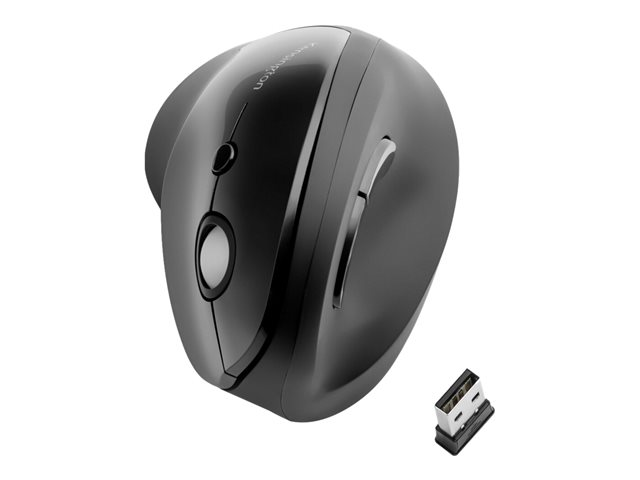 Kensington Pro Fit Ergo Vertical Wireless Mouse - Vertikal mus - ergonomisk - høyrehendt - 6 knapper - trådløs - 2.4 GHz - USB trådløs mottaker - svart