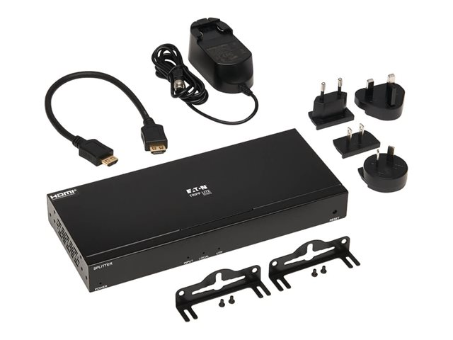 Eaton Tripp Lite Series HDMI over Cat6 Splitter er en løsning som er utviklet for å distribuere HD-video og lyd over flere skjermer. Denne splitteren med 4 porter støtter 4K 60 Hz-oppløsning, HDR og 4:4:4 chroma-subsampling, noe som gir klare og tydelige bilder og fargedybde. Med muligheten til å forlenge HDMI-tilkoblinger opp til 70,1 m (230 fot) over Cat6-kabler, gir den fleksibilitet for en rekke ulike installasjonsscenarier. Enheten er også utstyrt med funksjoner som 7.1-kanals lyd og Dolby TrueHD-støtte, noe som sikrer en rik og oppslukende lydopplevelse. De allsidige monteringsalternativene, inkludert vegg-, stolpe- og rackmontering, gjør den til et egnet valg for profesjonelle AV-oppsett. I tillegg er splitteren TAA-kompatibel og leveres med et omfattende sett med samsvarsstandarder, inkludert HDCP 2.2, noe som sikrer pålitelig ytelse av høy kvalitet. HDMI over Cat6-splitteren fra Tripp Lite er en effektiv løsning for utvidelse og distribusjon av HD-video og -lyd, enten det gjelder digital skilting, utdanningsfasiliteter eller AV-systemer i boliger.