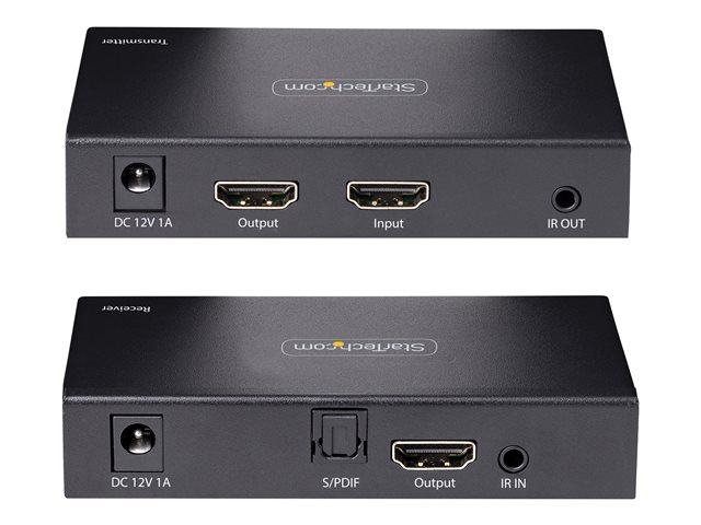 StarTech.com 4K HDMI Extender Over CAT5/CAT6 Cable, 4K 60Hz HDR Video Extender, Up to 230ft (70m), HDMI Over Ethernet Cable, S/PDIF Audio Out, HDMI Transmitter and Receiver Kit - Local Video Out, Power Over Cable (4K70IC-EXTEND-HDMI) - Video/lyd/infrarød-utvider - HDMI - over CAT 5/5e/6/6a - opp til 70 m 4K70IC-EXTEND-HDMI