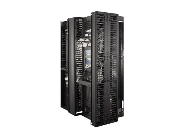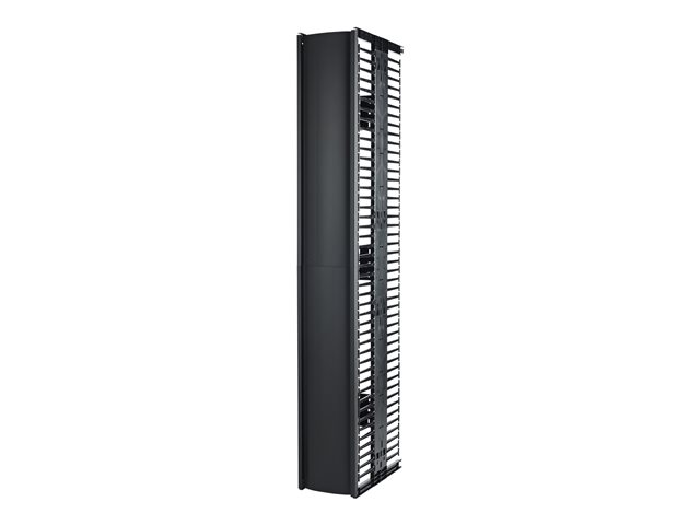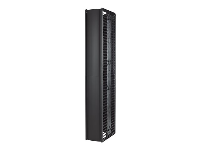 This 12” wide, vertical cable manager for 2 and 4 Post open frame racks ships unassembled for rapid onsite assembly and features full height dual hinging doors and double-sided cable channel with multiple internal cable tie-off locations and smooth plastic fingers at 1U increments for organized patching applications.