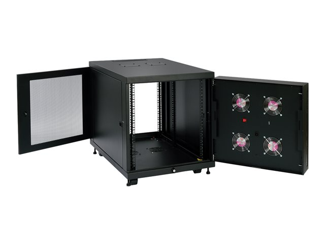 This SmartRack 12U Mid-Depth Rack Enclosure Cabinet protects sensitive electronic equipment from harsh conditions that would overwhelm a typical rack enclosure. It is deal for use in factories, construction areas, utility plants, warehouses and other areas with limited space that are high in moisture, dust and debris. It can protect your equipment from falling dirt, dust, drips, splashes and accidental contact with personnel. On the front door there is a built-in dust filter. The filter is removable and can be replaced with standard furnace filters - they're simple, inexpensive and effective. To compensate for the added air resistance of the filters, there are 4 large, high performance intake fans in the front door. The fans pull air through the enclosure, from front to side. Adjustable rack rails with square mounting holes accommodate up to 12U of standard 19" rackmount equipment. Supports up to 453 kgs (1000 lbs) of equipment.