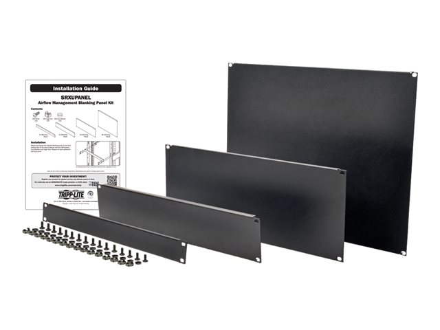 The SRXUPANEL Blanking Panel Kit fills unused spaces in your standard 19-inch rack. Not only does this give your rack a sleek, clean look, but it also protects your valuable rack equipment by improving airflow and cooling efficiency. By closing off unused rack openings, these blanking panels prevent hot air from recirculating through open spaces. This reduces operating costs, improves performance and provides longer lifespans for your equipment. Constructed from heavy-duty cold-rolled steel in a durable black powder-coat finish to match most rack enclosures, the SRXUPANEL includes four blanking panels in different sizes: 1U, 2U, 4U and 8U. This gives you the flexibility to close off up to 15U in rack space in different configurations as needed. Just attach the desired panels to the rack's front vertical mounting rails using the included hardware.
