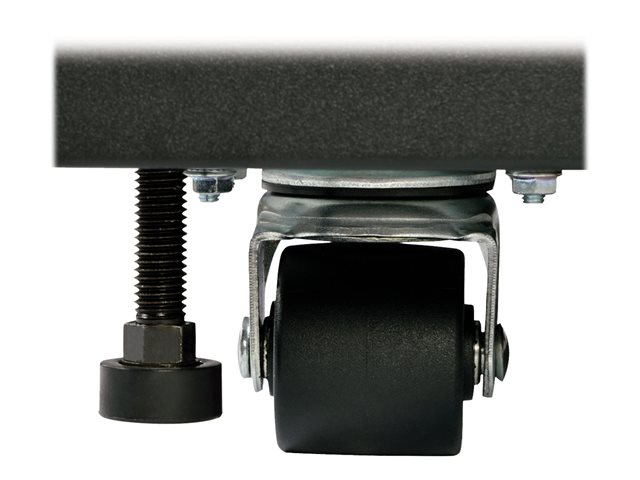 The SRX12UBFFD comes fully assembled and ready to use with removable casters and levelers for smooth deployment and placement. Square mounting holes and numbered rack spaces make equipment installation easy. The adjustable front and rear vertical mounting rails accommodate equipment up to 32.5 inches (82.6 cm) deep, such as 1U servers, UPS systems, battery packs, network switches and patch panels.
