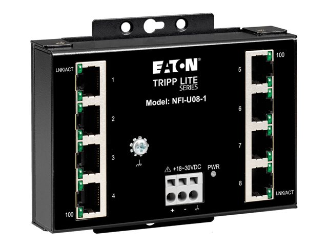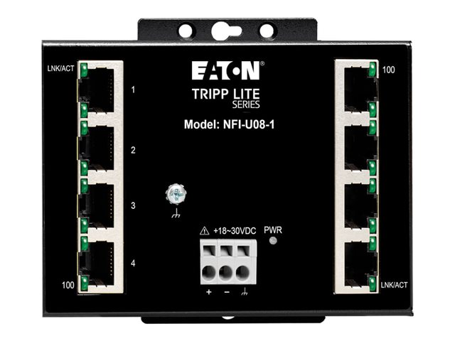 Eaton Tripp Lite Industrial Ethernet Switch er konstruert for eksepsjonell ytelse og pålitelighet i krevende industrimiljøer. Med åtte 10/100 Mbps-porter tilbyr denne ikke-administrerte svitsjen robuste tilkoblingsmuligheter for et bredt spekter av industrielle bruksområder. Den fungerer pålitelig i ekstreme temperaturer, fra -40 °C til 75 °C, noe som gjør den egnet for bruk under ulike tøffe forhold.