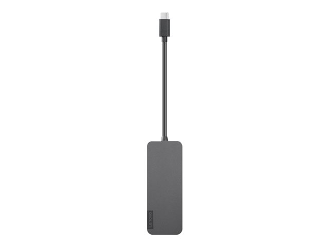 Expand your device's connectivity with the Lenovo USB-C to 4 Port USB-A Hub. This compact and durable hub transforms a single USB-C port into four USB 3.0 ports, allowing you to connect a variety of devices simultaneously. Whether you're at home or in the office, this hub ensures you can attach multiple peripherals, from keyboards and mice to external storage and more, without sacrificing performance. Its high-speed data transfer capability makes it ideal for multitasking and handling data-intensive applications. Designed to operate in a wide range of environmental conditions, and compliant with several international standards, the Lenovo USB-C to 4 Port USB-A Hub is the perfect solution for expanding your connectivity options.