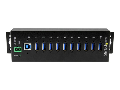 This TAA compliant 10-port industrial USB 3.0 hub gives you the scalability you need in harsh industrial environments, product and repair labs, conference rooms or office workstations. With its rugged industrial grade metal housing, it is designed to meet the advanced requirements of connecting a high number of devices in factories and office environments.