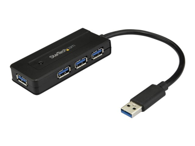 StarTech.com 4 Port USB 3.0 Hub SuperSpeed 5Gbps with Fast Charge Portable USB 3.1/USB 3.2 Gen 1 Type-A Laptop/Desktop Hub, USB Bus Power or Self Powered for High Performance, Mini/Compact - 15W of Shared Power (ST4300MINI) - Hub - 4 x SuperSpeed USB 3.0 - stasjonær - for P/N: USB312SAT3CB, USB315CB2M, USBLT1MWS, USBLT2MBR, USBLT30CMW, USBLTM1MBK, USBLTM1MWH ST4300MINI